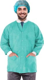 Disposable Lab Jackets; 31" Long. Pack of 10 Teal Hip Length Work Gowns Large. SMS 50 gsm Shirts with Snaps Front; Knit Cuffs & Collar; 3 Pockets. Uni